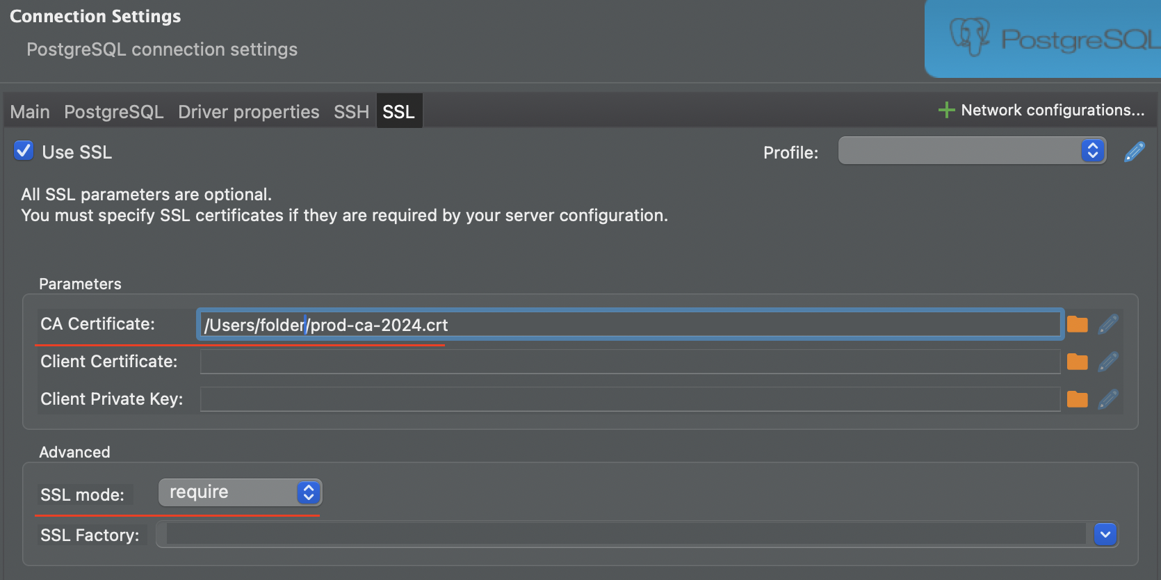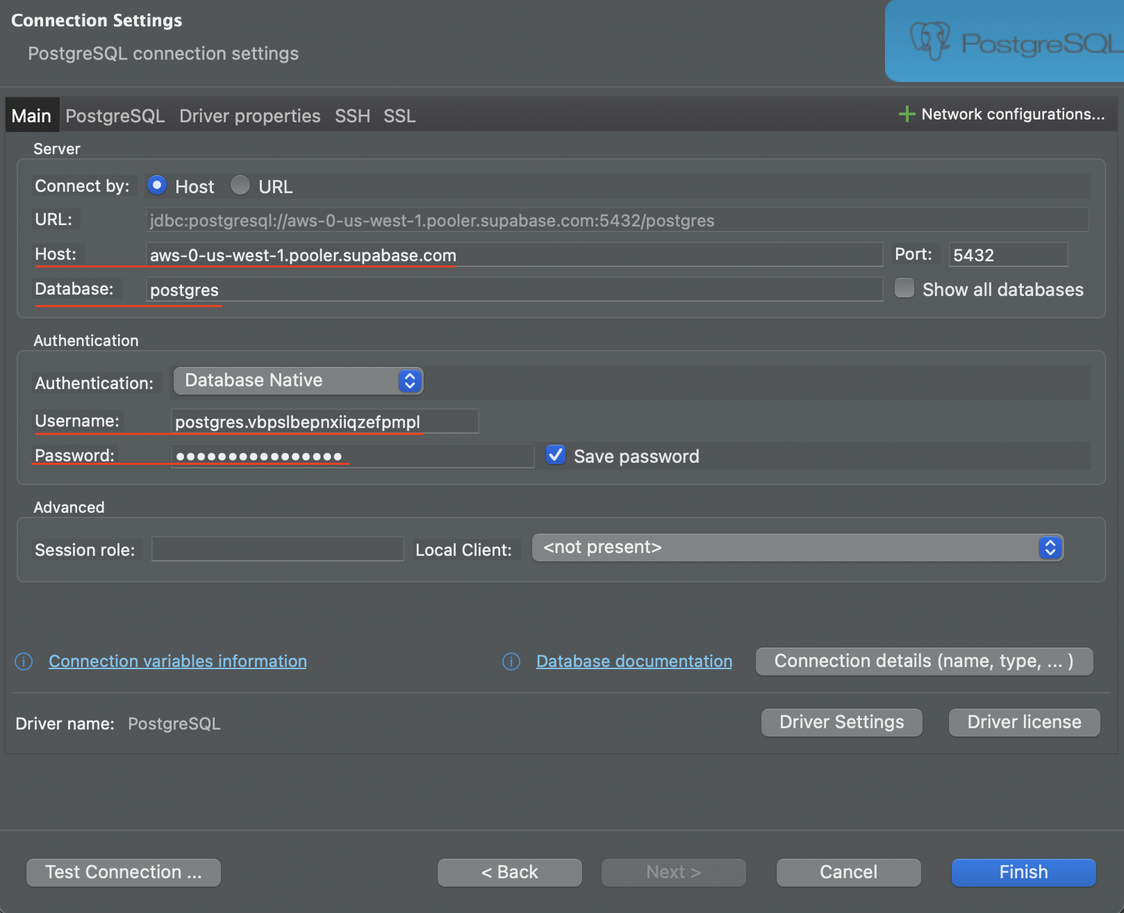 You will also need your database's password. If you forgot it, you can generate a new one in the settings.