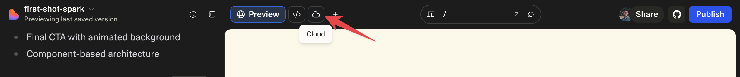 The Cloud icon appears for all projects, regardless of which backend type you're using. Click it to see your actual backend configuration.